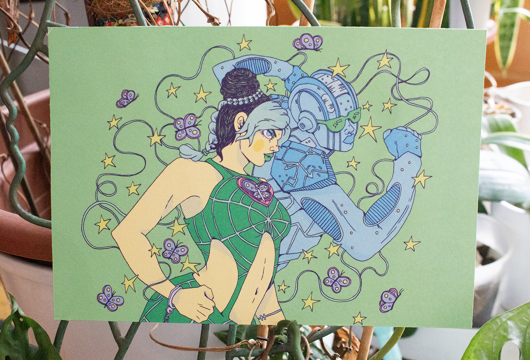 Print of my fanart of Jolyne Kujoh from JoJo's Bizarre Adventures, Stone Ocean. Avalaible in A5 - 250 Gr